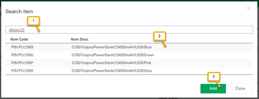 - Tekan Add untuk memasukkan barang yang telah dipilih ke dalam Form Transaksi
