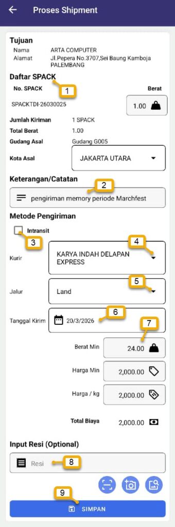 - Tidak Centang – Barang yang dipaking dikirimkan via ekspedisi ke customer