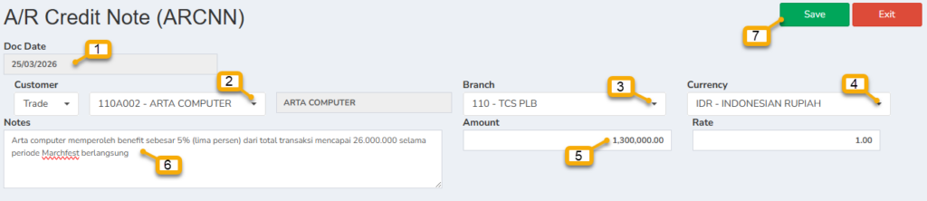 5. AR CREDIT NOTE NO POSTING (ARCNN)