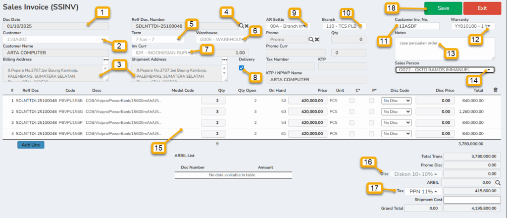 1. SALES INVOICE (SSINV)