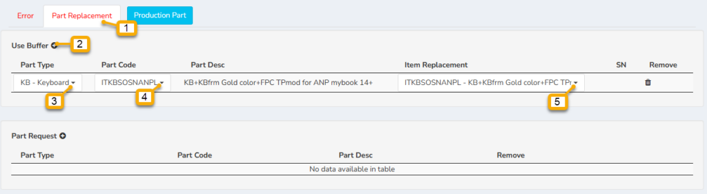 2. Tekan icon plus pada use buffer untuk menambahkan part yang akan diganti