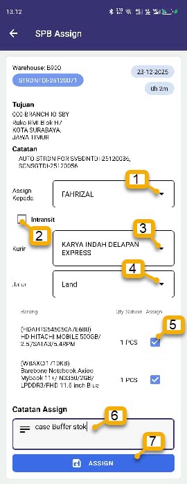 - Tekan ‘ASSIGN’ untuk menyimpan transaksi