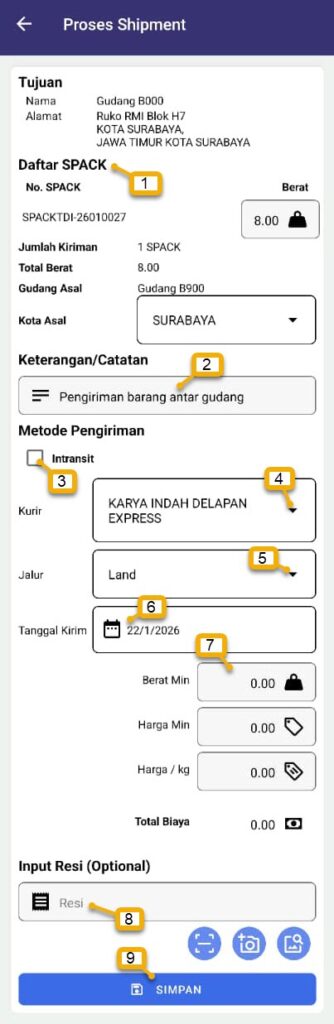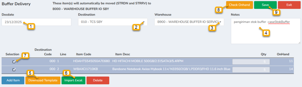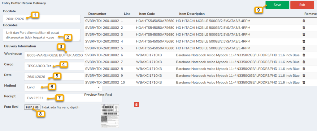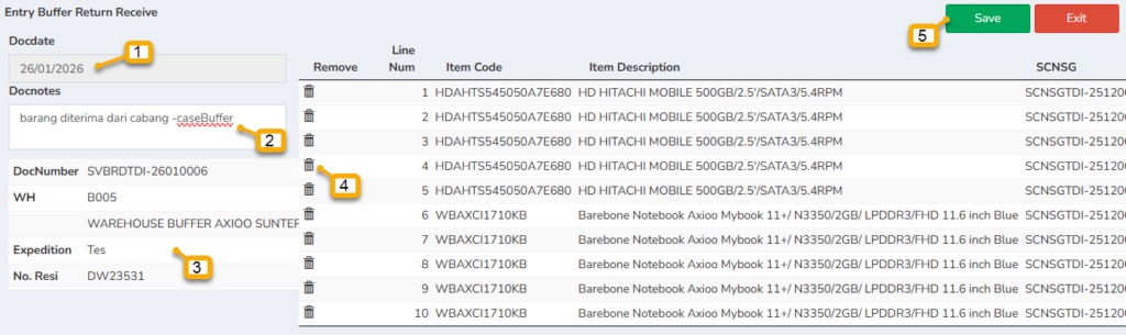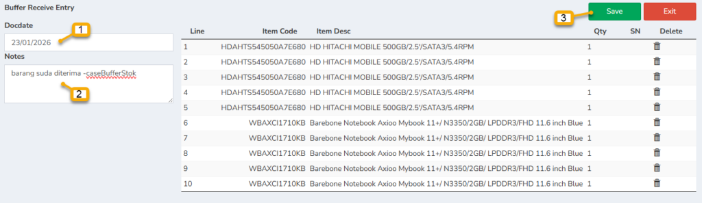 - Tekan tombol Save untuk menyimpan transaksi buffer delivery.