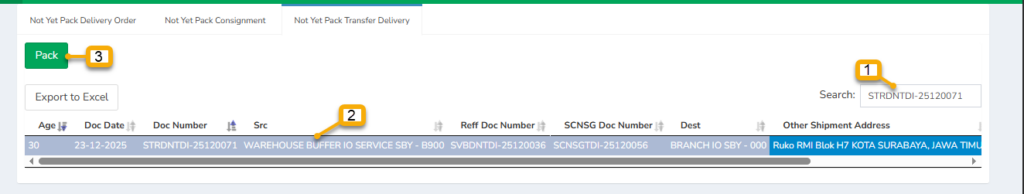 - Tekan Pack untuk melanjutkan proses transaksi (Packing)