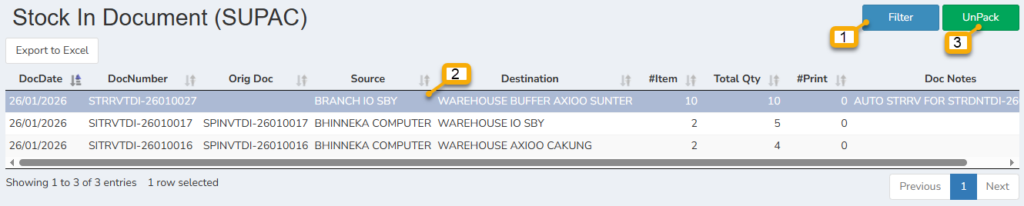 Penerimaan buffer part ke cabang berpengaruh pada dokumen yakni Buffer Aging Stock dan bertambah di kolom “OK“