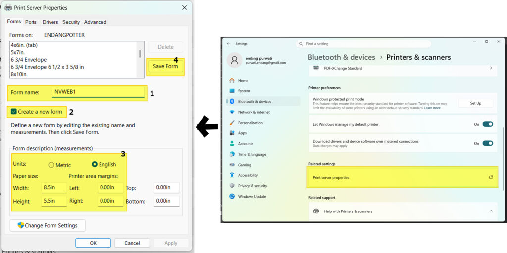 - Setting Ukuran Kertas “NV WEB” di Device Printer